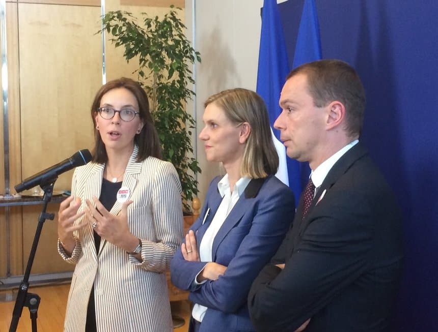 Les trois secrétaires d’Etat présents mardi à Bercy devant la presse et les fédérations professionnelles, de gauche à droite : Amélie de Montchalin (Affaires européennes), Agnès Pannier-Runacher (secrétaire d’Etat auprès du Ministre de l’Economie et des Finances) et Olivier Dussopt (Fonction Publique).
