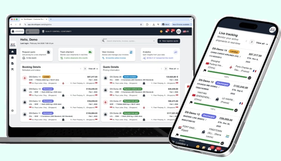 Fondé en 2019 avec un focus sur le sourcing dans les pays asiatiques et le freight forwarding associé, DocShipper Group étoffe sa logique d’accompagnement des PME et ETI dans leurs problématiques d’import en lançant sa propre plateforme digitale. Cet environnement unifié permet aux entreprises de centraliser, structurer et piloter l’ensemble des sujets de leur cycle d’approvisionnement : sourcing, contrôle qualité, transport et opérations douanières. La plateforme DocShipper a été conçue à partir de la réalité terrain, fait valoir cet acteur aux collaborateurs répartis entre Hong Kong, Paris, Tunis, Beyrouth et Chengdu, qui constatait que la gestion des opérations d’import-export reposait encore dans nombre d’organisations sur « une juxtaposition d’e-mails, de fichiers Excel, de portails transport limités au suivi d’expéditions et d’échanges dispersés entre différents prestataires ». D’où leur difficulté à consolider les données en question et ses conséquences en matière de visibilité et de capacité d’anticipation.