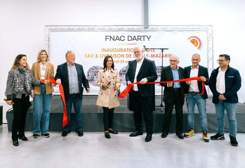 Aux ciseaux hier, Vincent Gufflet, le directeur Opérations et Services du groupe Fnac Darty, et Rafika Rezgui, maire de Chilly-Mazarin. © Mathilde Mazars