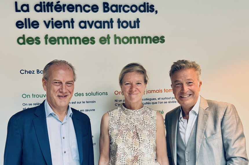 De G à D : Thierry van Ravestyn, CEO de Up Trace ; Nathalie Legrand, cofondatrice de Up Trace ; Fabrice Coevoet, président de Barcodis. ©Barcodis