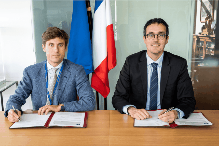 Florian Colas, le directeur général des Douanes et Droits indirects (DGDDI) et Benoît Rochet, le directeur général de Haropa Port ont signé jeudi dernier une convention de partenariat inédite en France. © Haropa Port