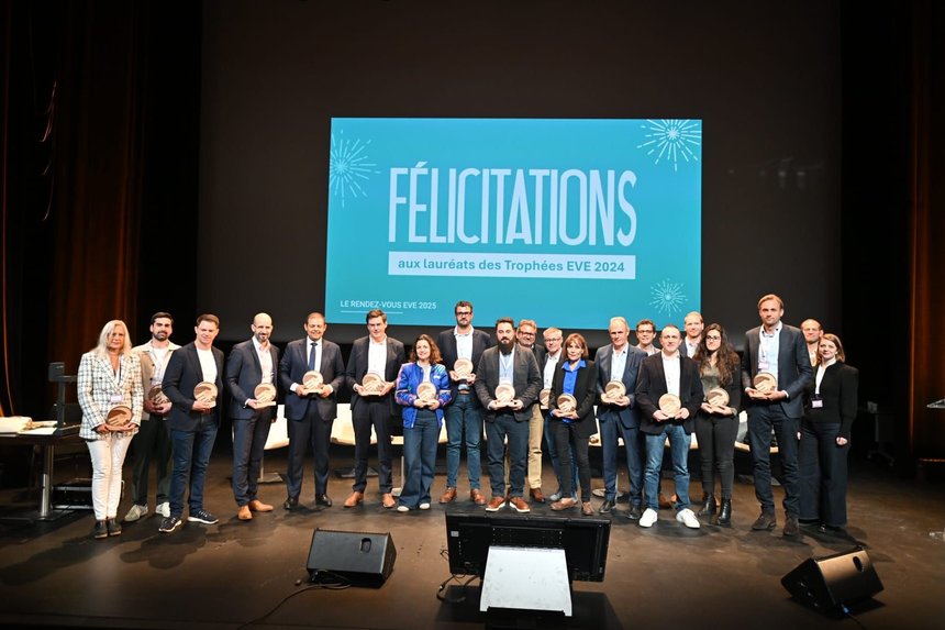 Les nombreux lauréats de la 6ème et dernière édition du Rendez-vous du transport et de la logistique éco-responsables, organisée hier par le programme EVE. © EVE Transport & Logistique